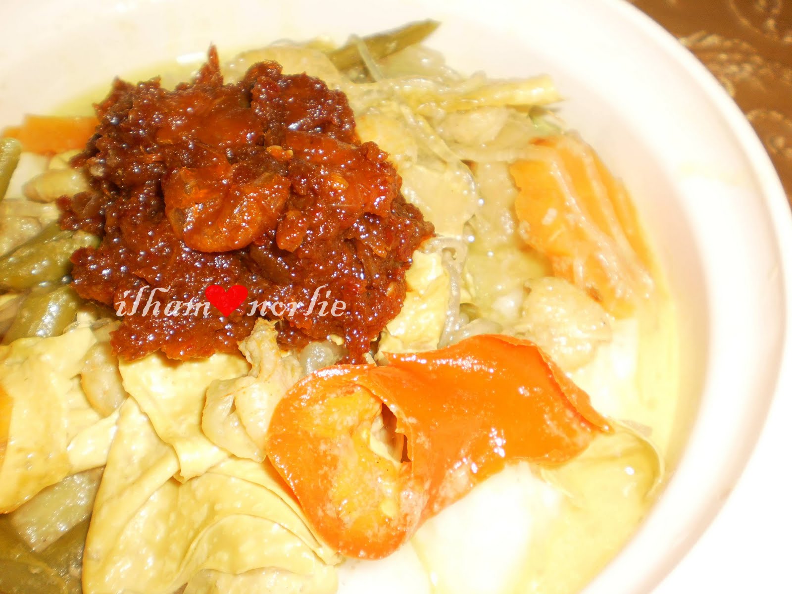 Nasi impit kuah lodeh ni adalah kesukaan anak anak dan mr hubby akak.. akak ni sekadar boleh jamah je.. nak suka sangat tu rasanya biasa je.. akak lebih suka soto ayam @ mee yang berkuah lagi. kalau mee goreng pun akak kurang minat...., kalau nak suruh akak makan mestilah mee goreng yang basah basah lembab baru boleh telan...hahaha... hiii.. banyaknya ragam! lain orang lain seleranya kannn..